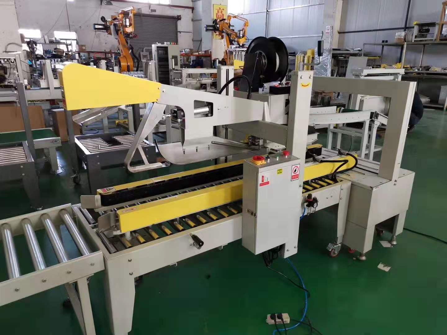 可以根據用戶的實際需要選擇加長輸送帶自動封箱機與標準型打包機的組合使用,也可以選擇自動封箱機與無人化打包機的組合使用,另外也可選用全自動折蓋封箱打包機的結合使用,并且功能也有可選性比如井字形打包、稱重、噴碼、自動開箱等各種功能的選擇。