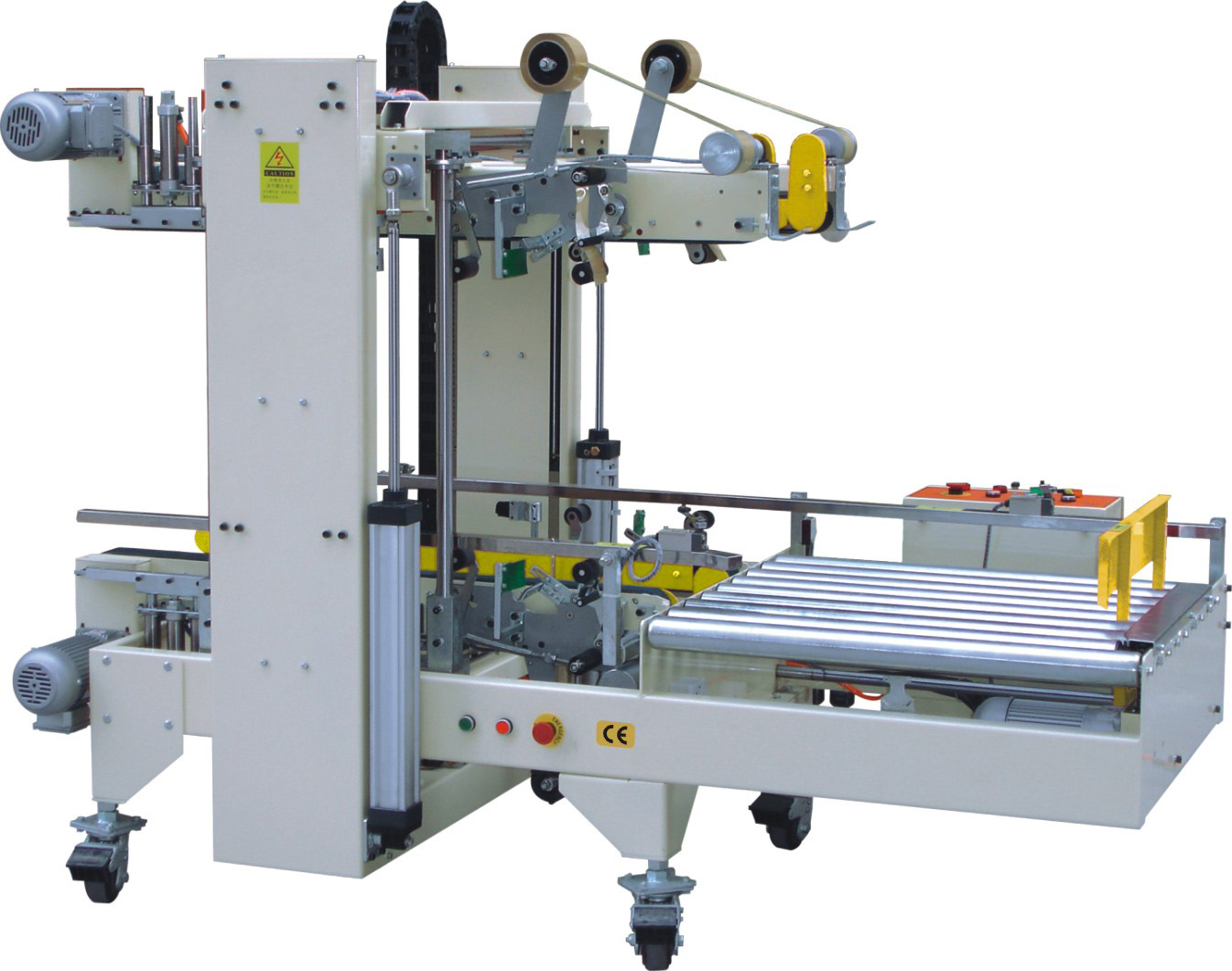 紙箱自動封箱機適用于紙箱貼膠帶的封口形式,只要是采用這種方式封口的都可采用封箱機來完成工作,由于這種封箱機生產的技術比較成熟,批量化生產,所以產品價格相對于其他包裝機械來講不是很高,經濟實用。下面小編為大家展示幾款常見的封箱機型