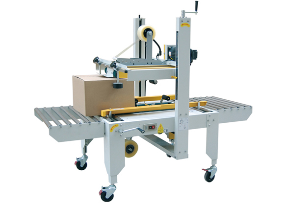 打開電源開關,使機器工作,再推入紙箱進行封箱,如果發現上下封箱的膠帶松緊不一致,調整膠帶筒座的旋鈕(一般膠帶過緊,則放松彈簧壓力;膠帶過松,則加緊彈簧壓力)。如果封箱膠帶的兩端長度不一致,調整膠帶頭中的切刀片(一般頭長尾短,調整切刀片,松開切刀片的鎖緊螺絲,把切刀往外移一點,再鎖緊螺絲,反之頭短尾長,則把切刀往里移一點)。